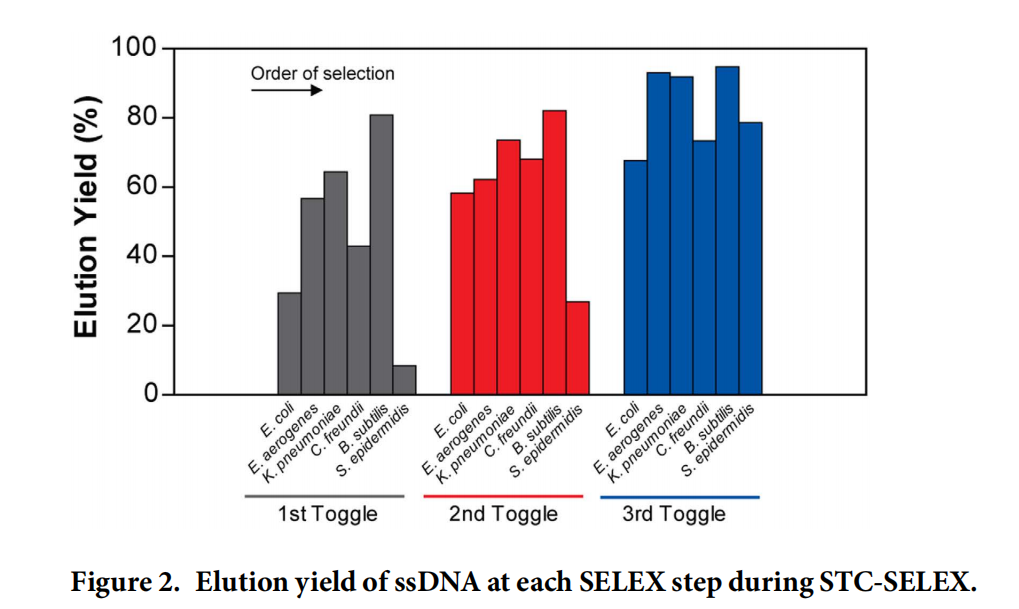 文献:Song M Y, Nguyen D, Hong S W, et al. Broadly reactive aptamers targeting bacteria belonging to different genera using a sequential toggle cell-SELEX[J]. Scientific reports, 2017, 7(1): 1-10.