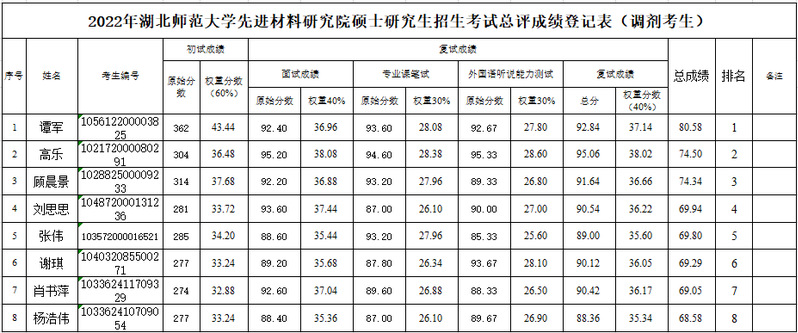 2022年伟德(国际)唯一官方先进材料研究院硕士研究生招生考试 进入复试考生复试成绩公示2