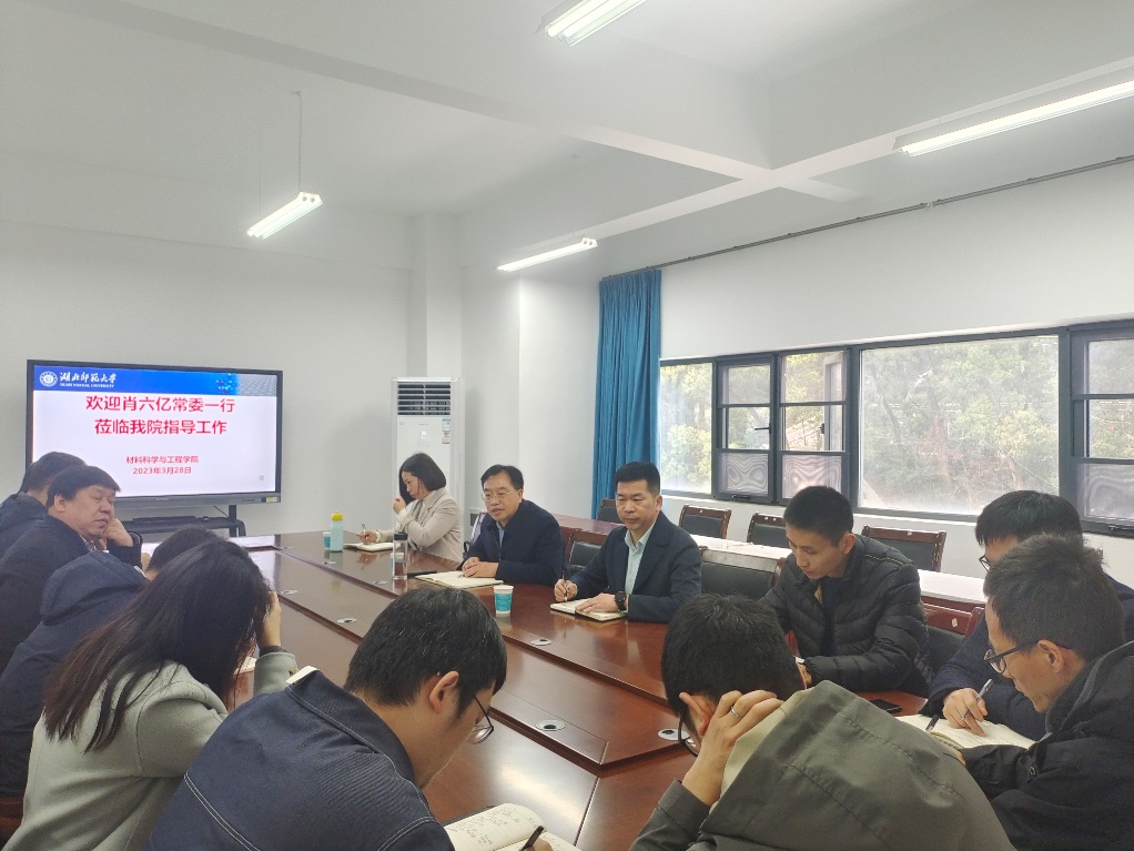 2023年3月28日上午,校党委常委、统战部长肖六亿,人事处副处长胡红贵、胡燕生一行莅临bv1946伟德国际调研指导人才引进、培养与服务工作。bv1946伟德国际院长王秀章、副院长杨伦以及部分青年教师代表参加座谈会。
