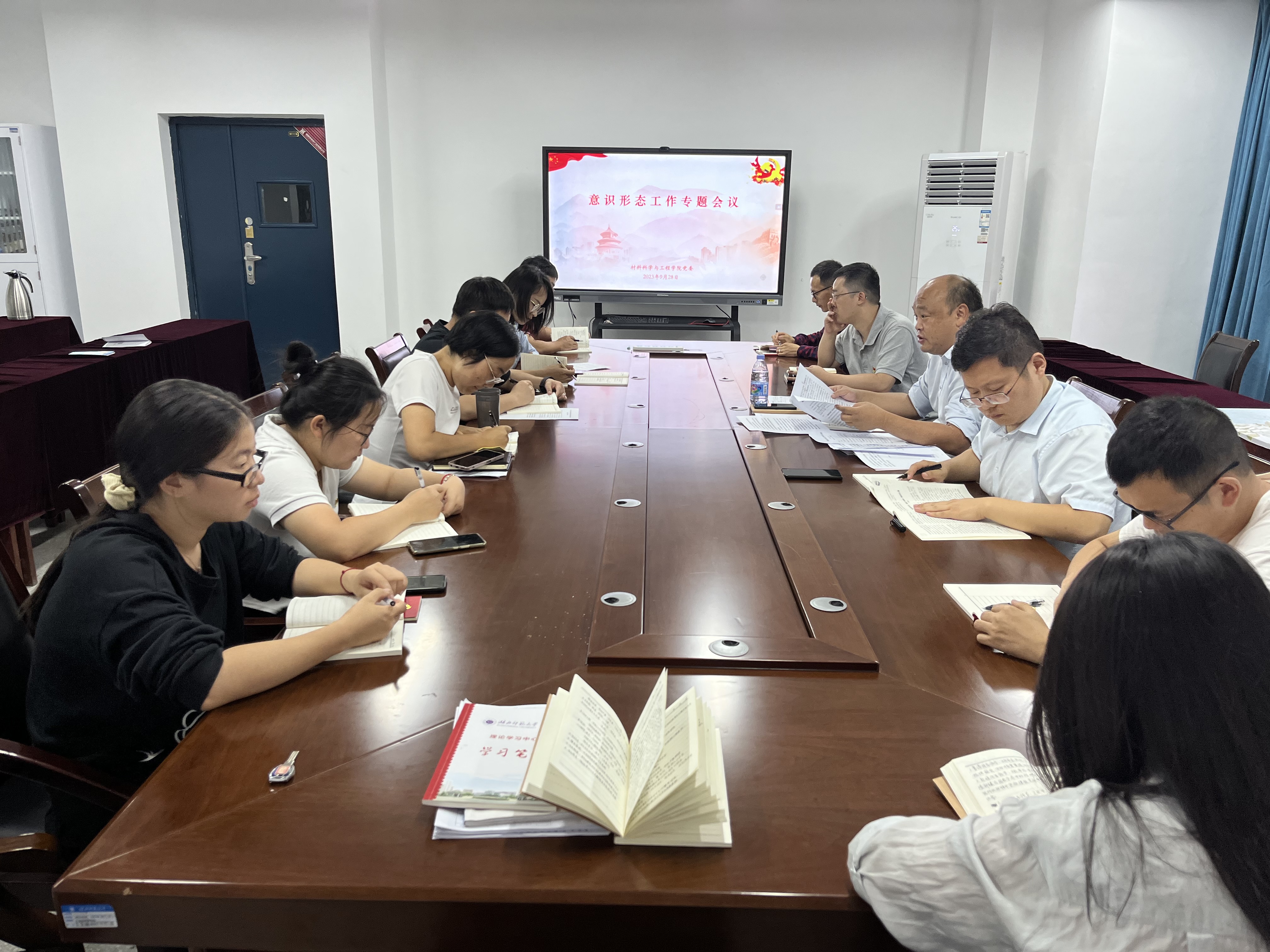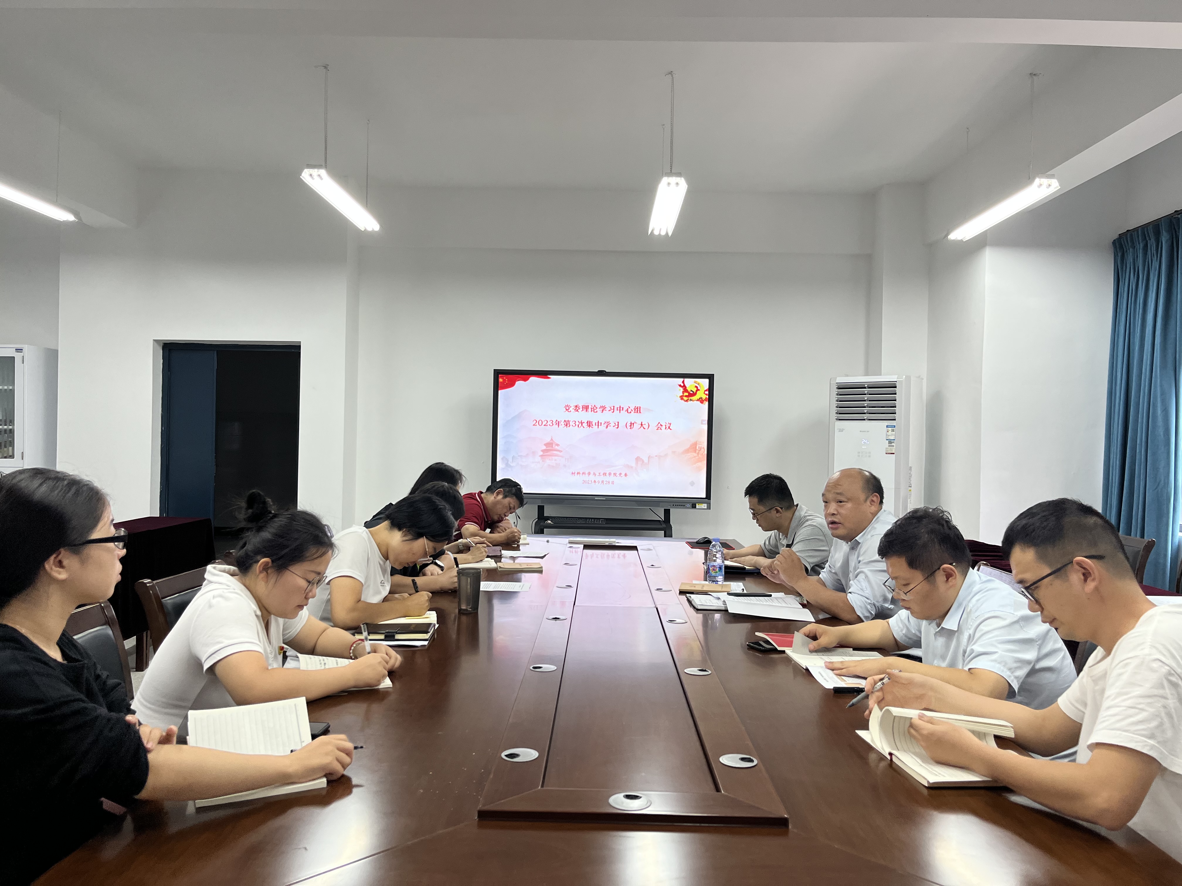 9月28日下午,材料科学与工程学院党委理论学习中心组召开2023年第三次集中学习(扩大)会议暨意识形态工作专题会议,党委书记刘飞主持会议并作总结讲话。党委理论学习中心组成员、教师党支部支委、辅导员参加会议。