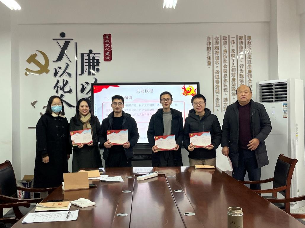 活动开始,全体党员集中交纳党费,重温入党誓词并集体诵读《中国共产党章程》第五章部分内容。随后,院党委书记刘飞为刘易斯、孙富华、宣琎楠、周建清等同志赠送政治生日贺卡,过政治生日。