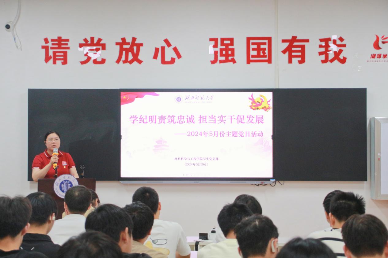 5月26日晚,bv1946伟德国际学生党支部在至诚一站式学生社区组织开展“学纪明责筑忠诚,担当实干促发展”主题党日活动。活动由学生党支部书记熊峰同志主持,支部全体党员、入党积极分子和全体本科生参加。