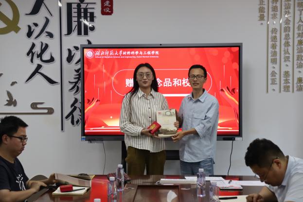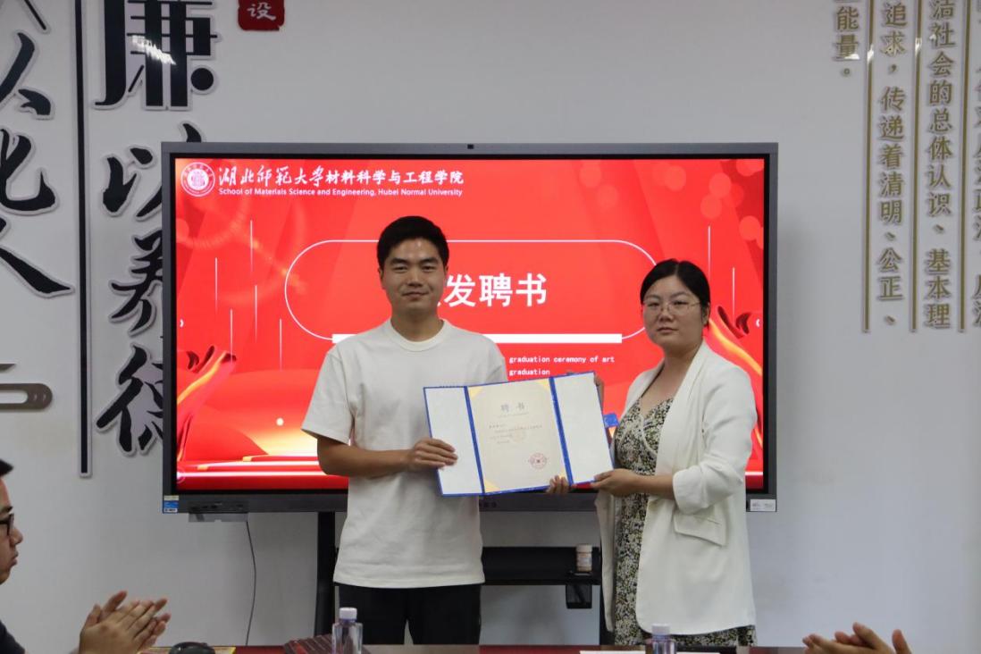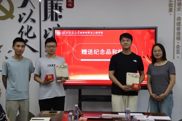 党委副书记殷婷婷为校友联络员吴传奇颁发了聘书。吴传奇同学表示,将认真履行校友联络员的职责,积极搭建校友与学院之间的桥梁,为学院的发展贡献自己的力量。紧接着,导师们为毕业生们赠送了纪念品和校史书籍希望他们进一步感悟校史底蕴增强爱校荣校情怀