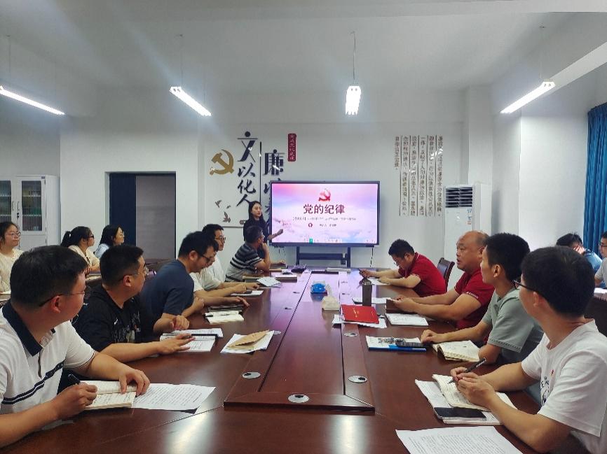 在专题学习环节,刘易斯同志领学了习近平总书记在山东考察时的重要讲话精神;曹涛同志领学了习近平总书记在中共中央政治局第十四次集体学习时的重要讲话精神;曹艺同志领学了李干杰在学习习近平总书记《序言》暨第六批全国干部学习培训教材出版座谈会上的讲话内容。随后,刘易斯同志领学了《中国共产党纪律处分条例》(第六章至第十一章)并给全体党员上了一节以“党的纪律”为主题的纪律微党课,深入剖析了遵规守纪的重要性,引导党员、干部全面理解和执行党的纪律,主动将党的纪律作为自身言行的规范,确保言语审慎、行为得体,以彰显党员应有的风范和品质。