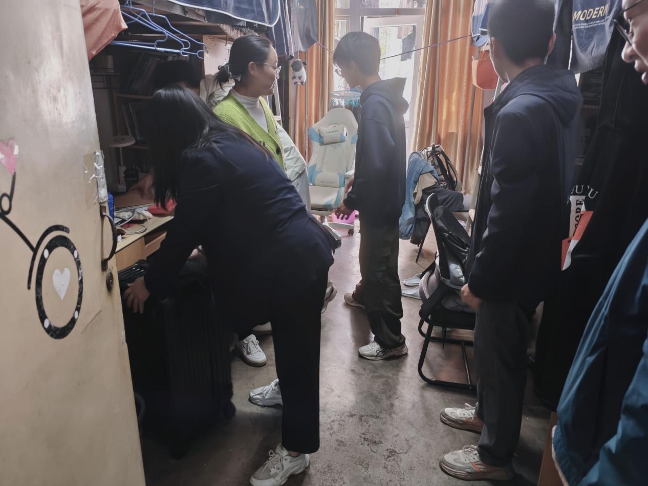 为进一步推进文明宿舍创建,改善宿舍卫生环境,规范学生日常行为,10月24日中午,bv1946伟德国际党委副书记殷婷婷,班主任熊东彬、马祯,辅导员林静及全体学生干部,深入学院30间学生宿舍,排查安全隐患,检查内务环境及宿舍文化建设情况。