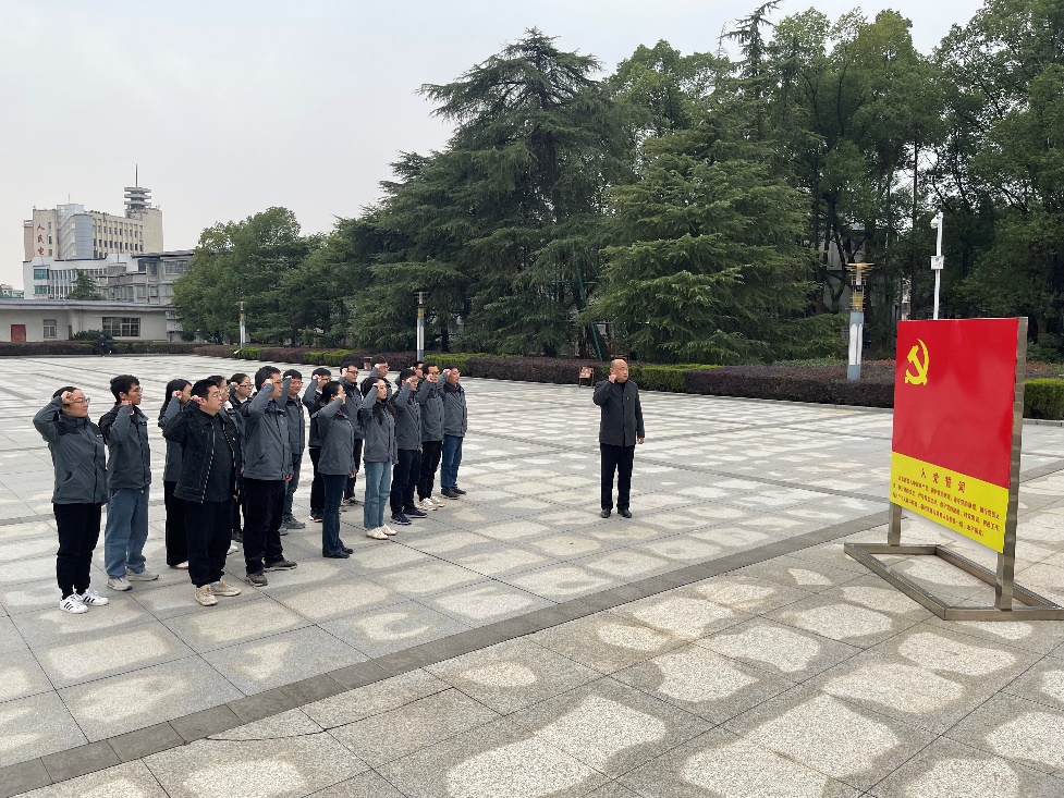 在陵园,全体党员队列整齐、庄严肃静,刘飞同志作为代表向烈士纪念碑敬献了花束,全体党员集体默哀,表达对革命英烈的深切缅怀和哀悼。随后,全体党员重温入党誓词,鲜红的党旗下,回响着镌刻着信仰的声音。全体党员怀着崇高的敬意参观凭吊烈士纪念碑,表达对革命先烈们的深切缅怀。