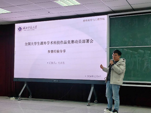 随后,进入经验分享环节。刘昌宁老师深入剖析了“挑战杯”与其他赛事的区别,鼓励同学们不要局限于挑战杯,要积极参与各类校级赛事,通过实践提升自己的学术能力。刘老师还分享了自己指导学生完成科研论文、A类学科竞赛、科研项目等取得的优秀成果,激励同学们树立远大志向,奋发图强。纪永生博士以亲身经历的省赛和国赛为案例,向同学们传授了竞赛中的宝贵经验。他详细讲述了如何选题、挑选赛道和准确定位,并分享了自己在竞赛过程中的心得与收获。纪博士鼓励同学们积极报名参赛,通过竞赛提高自己的学术研究能力,迈向更高层次的平台。