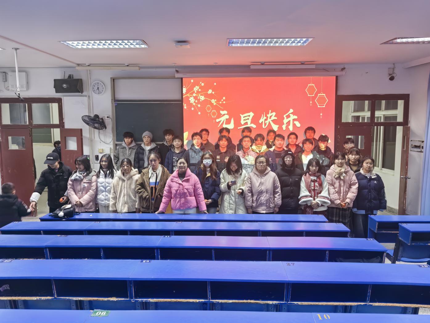 2025年1月1日,在教育大楼1J31教室,材料学院以一场别开生面的元旦晚点名活动,正式拉开了新年的序幕。学院党委副书记殷婷婷,班主任张勇军、熊东彬、马祯、曹艺和辅导员林静老师以及全体本科生和研究生参加此次活动,师生共聚一堂,喜迎元旦,共同见证了这一充满欢乐与祝福的美好时刻。
