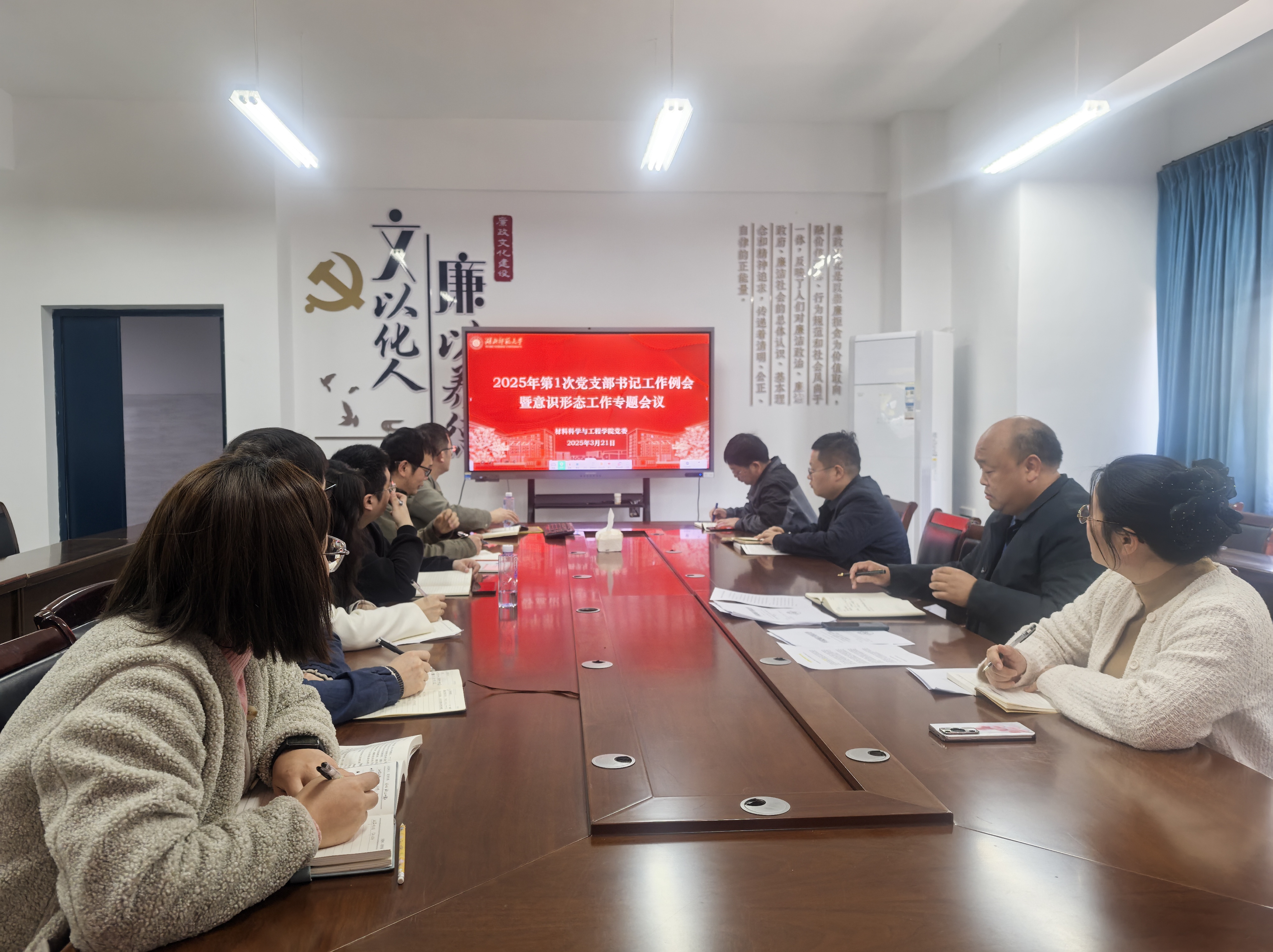 3月21日下午,学院召开2025年第一次党支部书记工作例会暨意识形态工作专题会议,党委班子成员、教师党支部书记及支委、学生党支部书记参加会议。会议由党委书记刘飞主持。