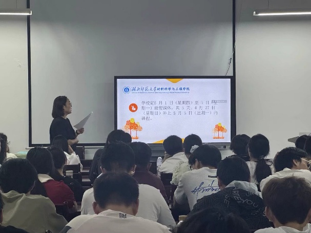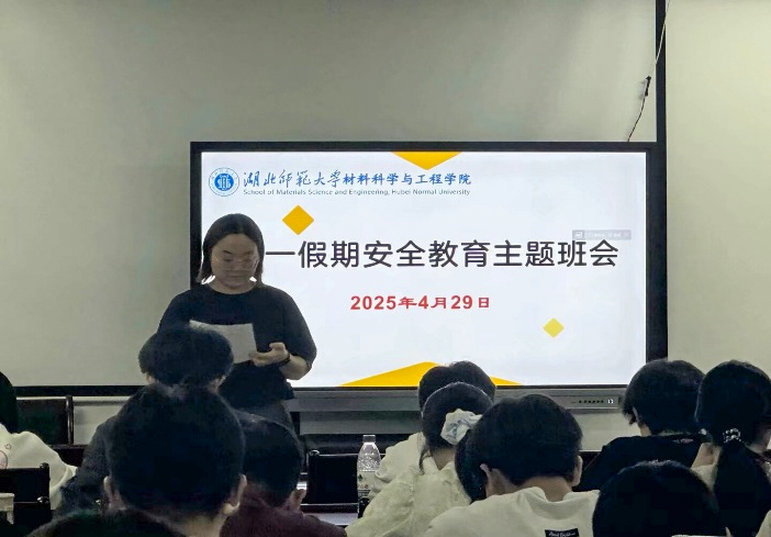 为切实增强同学们的安全防范意识,提升自我保护能力,4月29日晚,材料科学与工程学院在产教融合中心24430开展了以“五一假期安全”为主题的班会活动,全体本科生到场参加,辅导员林静主持。