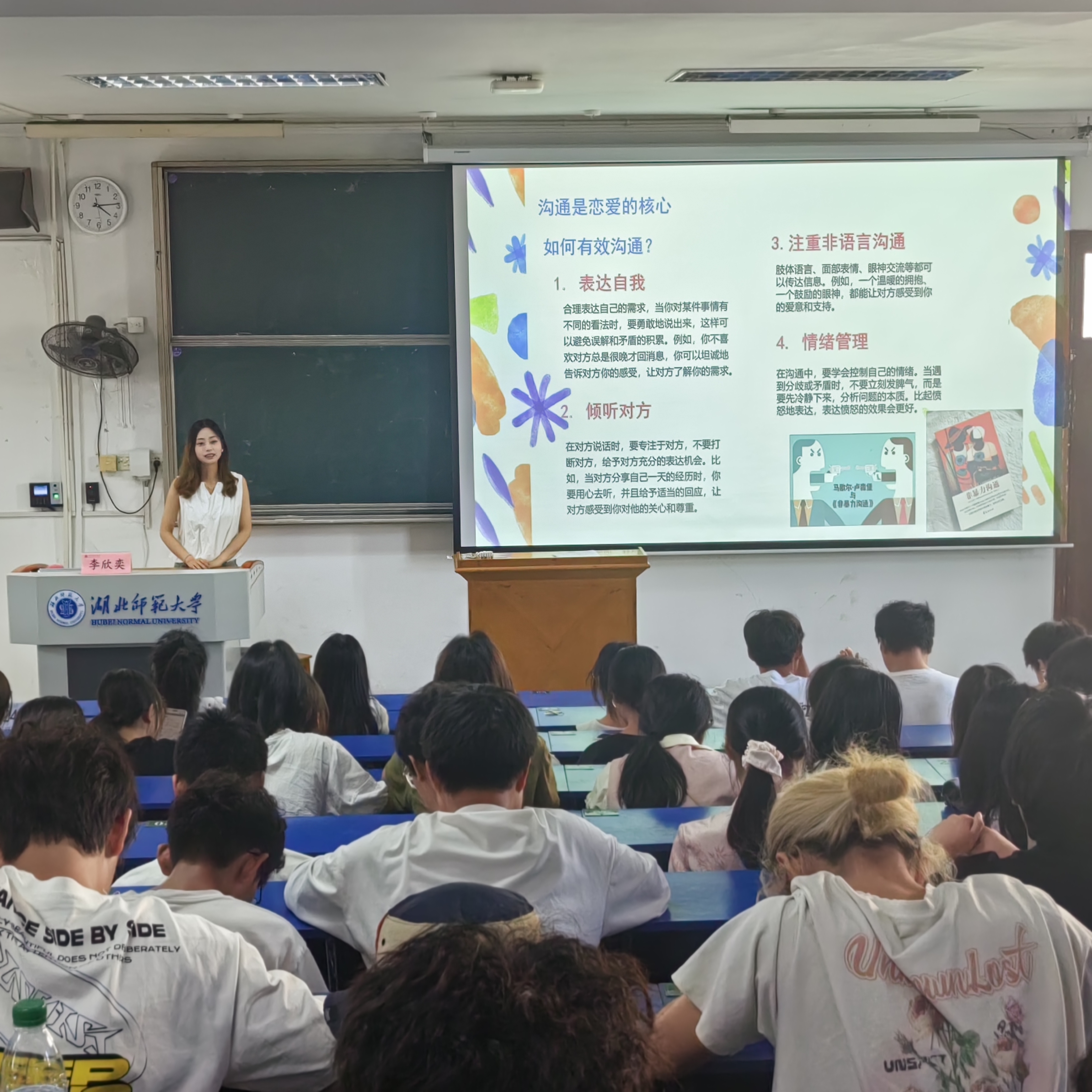 为回应大学生群体对亲密关系建设的迫切需求,5月29日,学院联合学校心理中心开展《爱的艺术:如何在恋爱中沟通与吸引》专题讲座,特邀心理中心专职教师、国家二级心理咨询师李欣奕担任主讲。活动聚焦当代青年情感痛点,通过理论解析与实操指导,助力学子建立科学恋爱观,实现情感能力与自我成长的双向提升。