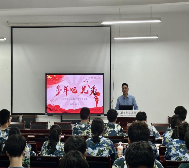 动员会上,退役士兵帅远礼同学进行征兵宣讲,快速点燃了新生们的从戎热情。帅远礼结合自身军旅经历,生动展现了军人“不怕苦、不怕累”的责任担当;鼓励bv1946伟德国际新生以此次军训为契机磨炼个人意志,学好本领,“将个人理想与国家需求结合,若有报国志,可积极投身国防事业”。新生代表积极上台表态,以行动率先呼应,并作出郑重承诺:“军训期间,坚决做到服从命令不打折,严守纪律不犯错,突破自我不畏难,团结协作护集体,互帮互助共成长,切实用实际行动展现材料学子的青春担当。”