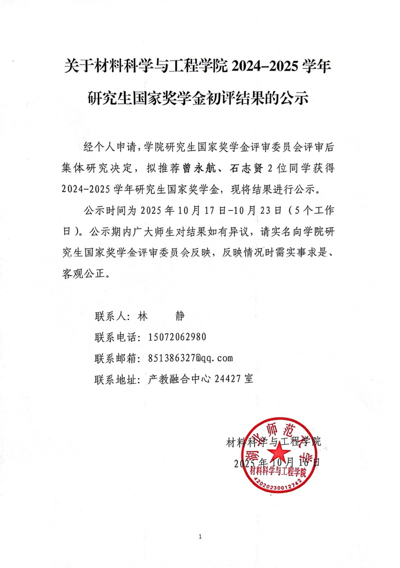 关于bv1946伟德国际2024-2025学年研究生国家奖学金初评结果的公示