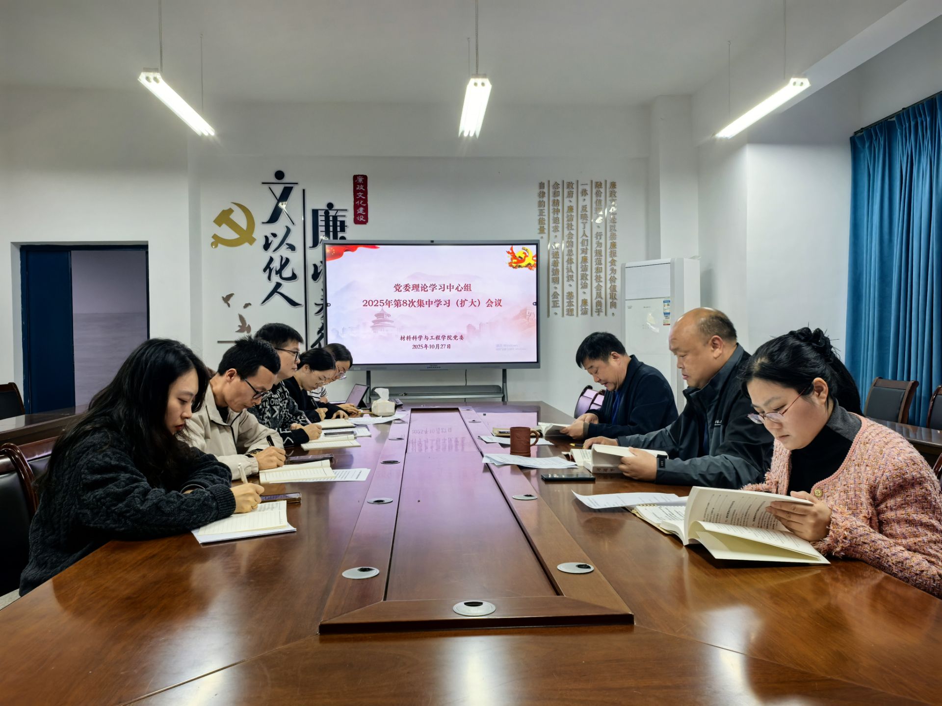 10月27日下午,院党委理论学习中心组召开2025年第8次集中学习(扩大)会,专题学习研讨《习近平谈治国理政》第五卷,院党委书记刘飞主持集体学习并作讲话。全体在院院领导,党委理论学习中心组成员、各党支部书记参加会议。