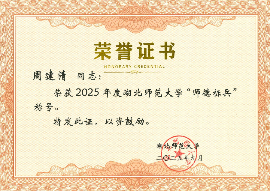 周建清老师用实际行动诠释了“学高为师、身正为范”的深刻内涵。他以扎实的专业素养、高尚的师德品格和无私奉献的精神,成为学生心中的好老师、成长路上的引路人。他也先后荣获“师德优秀”、“教学优秀”、“综合优秀”、“优秀学士学位论文指导教师”等多项荣誉称号。