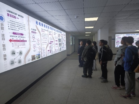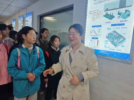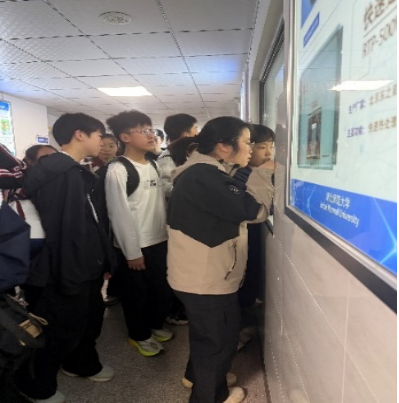 学院教师王心宇、张萌、黄文洁、陈灵颖、刘迎组成讲解团队,向师生介绍学院办学特色、学科优势及人才培养成果。师生参观专业实验室,近距离接触磁控溅射、脉冲激光沉积(PLD)等先进设备,了解其原理与操作,在电池材料展示区,了解新能源材料研发工艺流程与应用场景。同学们认真学习、踊跃提问,展现良好求知风貌。